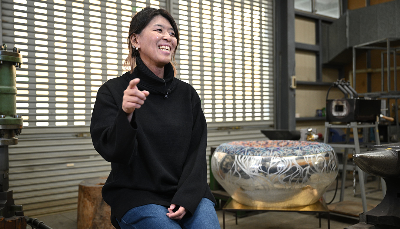 直観ですね。あと、ここが大事なんですけど、工芸ってやっぱ素材なんですよね。鍛金もハンマーで鍛えていくって感じなんですけど、叩くとだんだん膨らんでくるんですよ。だから風船みたいに、叩くと金属の素材がこう外に張ろうとして、それそのものの形っていうのが出てくるので、やっぱりそこは直感といいつつ・やりつつも、